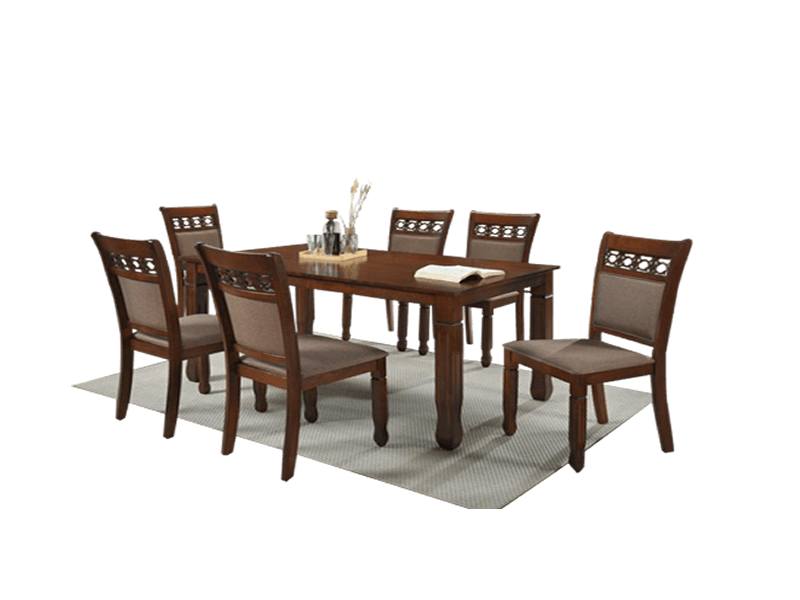 Give a simple and royal look to your dining space with the systematically and beautifully crafted Miami 6 Seater Dining Set. It is made from premium quality Pine wood and available in honey finish. You can also customise the finish of the set as per your style and taste. The chair back having horizontal strip design and the height of the table makes it a charming furniture piece to have in every dining room. The slender table legs provide an incredible support and space to seat comfortably without any hassle. Also, it can be placed anywhere in the house, and it easily blends with any style decor.