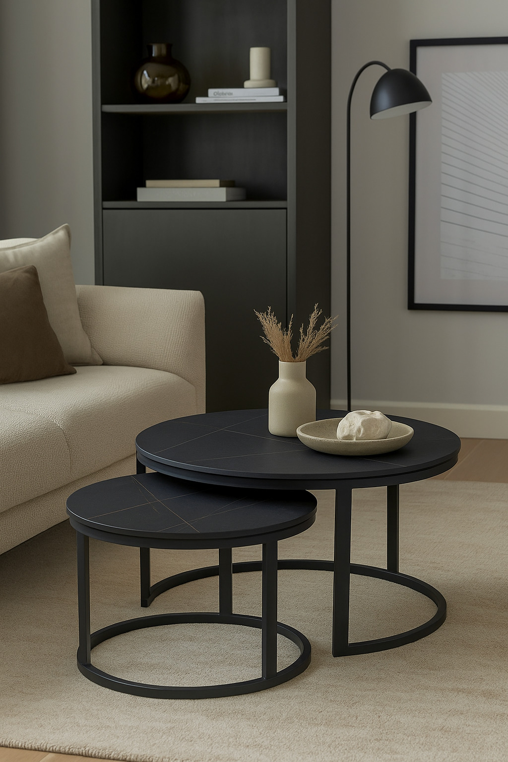 Whether styled together or used separately, these nesting tables offer practical versatility with a chic, understated presence. Ideal for modern living rooms, studios, or office lounges.