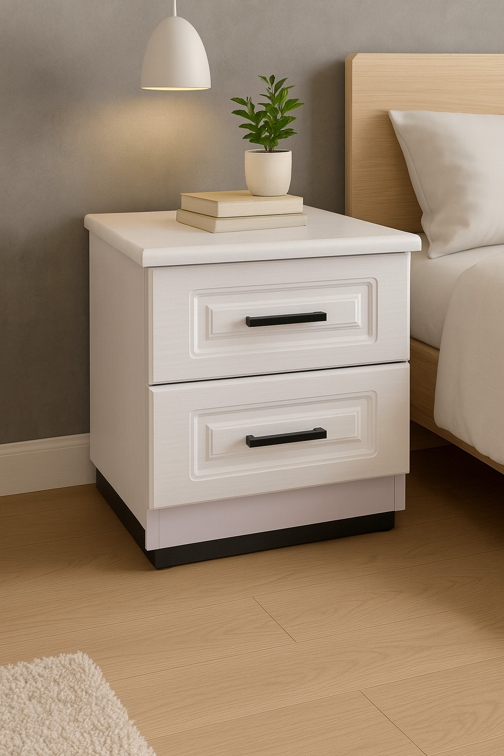 The Orion Bedside Drawer is designed to bring both charm and practicality to your bedroom. With its clean white finish, detailed panel fronts, and sleek black handles, it strikes the perfect balance between modern chic and classic style. Two spacious drawers provide ample storage for all your nightly essentials.